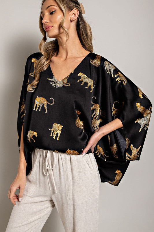 Leopard Print V-Neck Blouse Top. Comfy And Flowy!