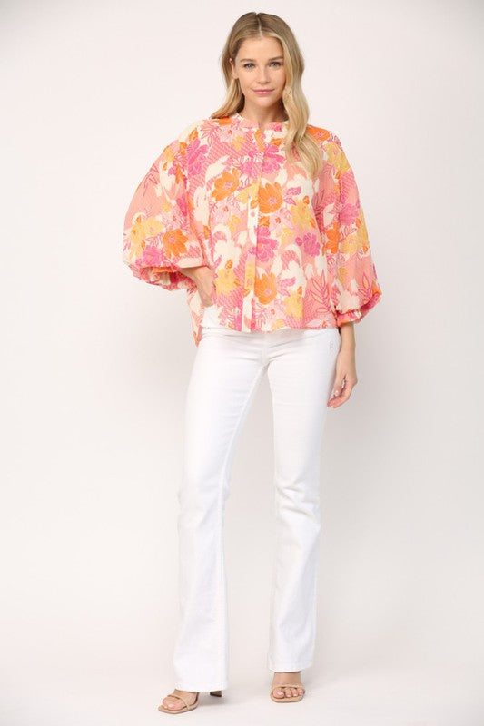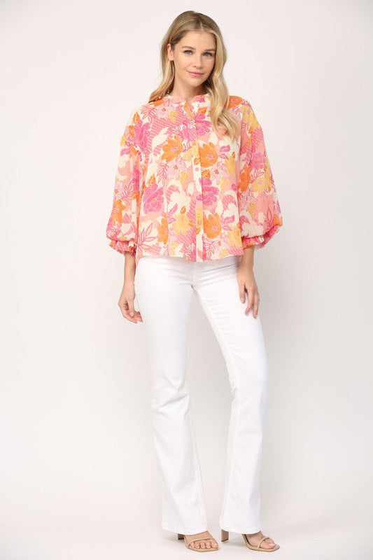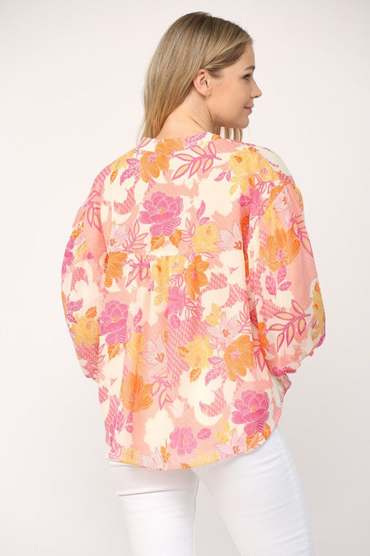 Floral Print 3/4 Ballon Sleeve Blouse Fabric ContentsS:100%PolyL:100%Poly