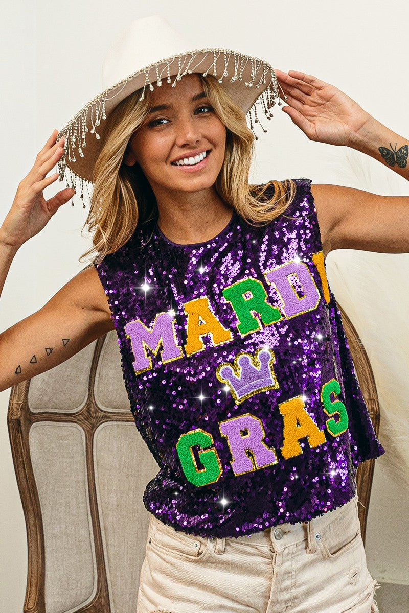 Mardi Gras Fringe Detailed Sequins Crop Top