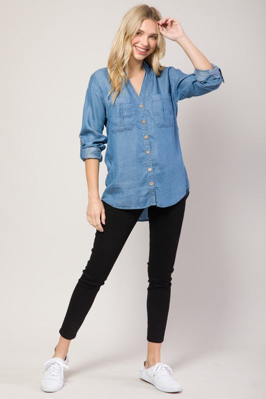 Medium Denim Chambray Button Down Denim Shirt