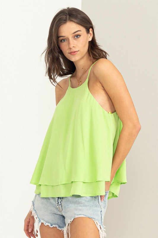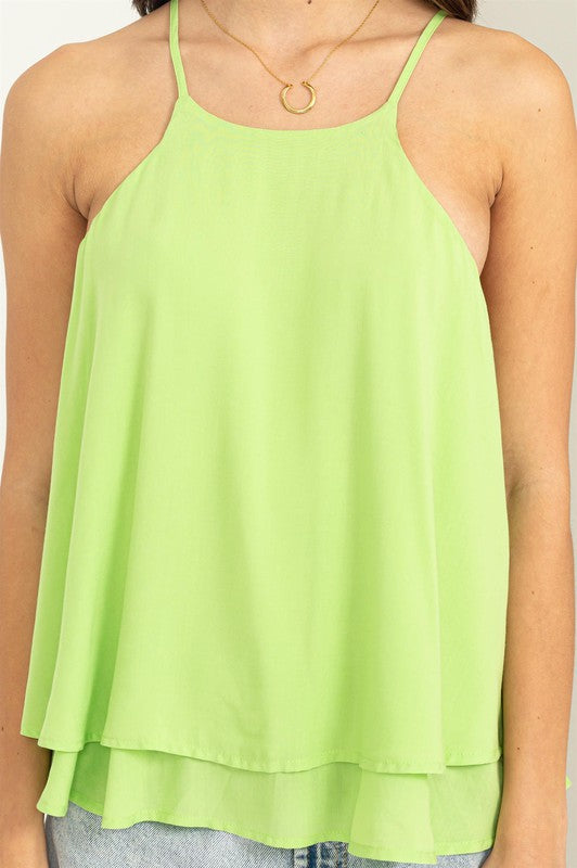 The Perfect Layer Piece Is Here! This Top Is Cut With A Halter Neck And Slightly Loose-Fit Silhouette For You To Look Truly Breezy. Keyhole Cutout At Back Adds Style, Finished With A Layered Ruffle Hem That Enhances Your Every Step.