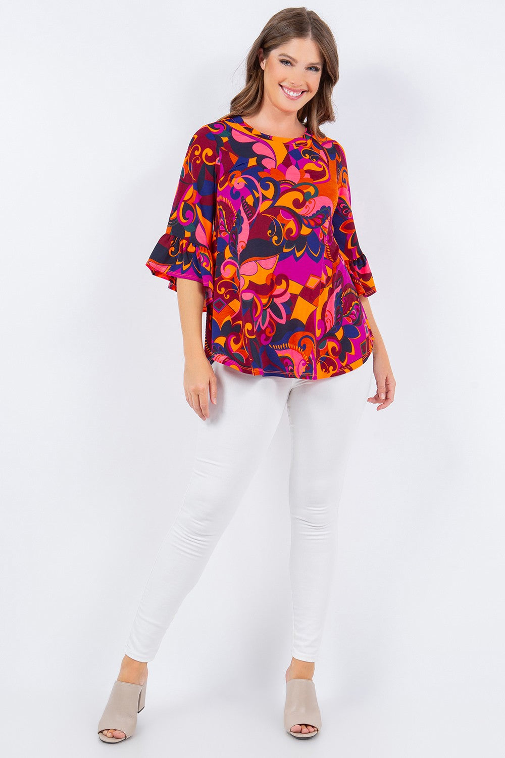 Multi Print Tunic Top Detail On The Sleeves