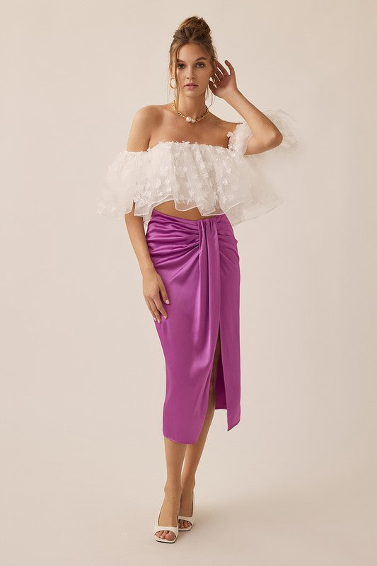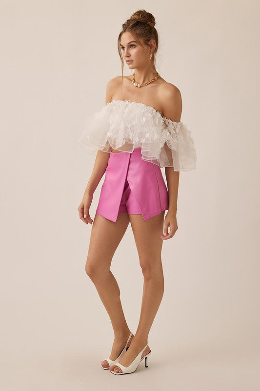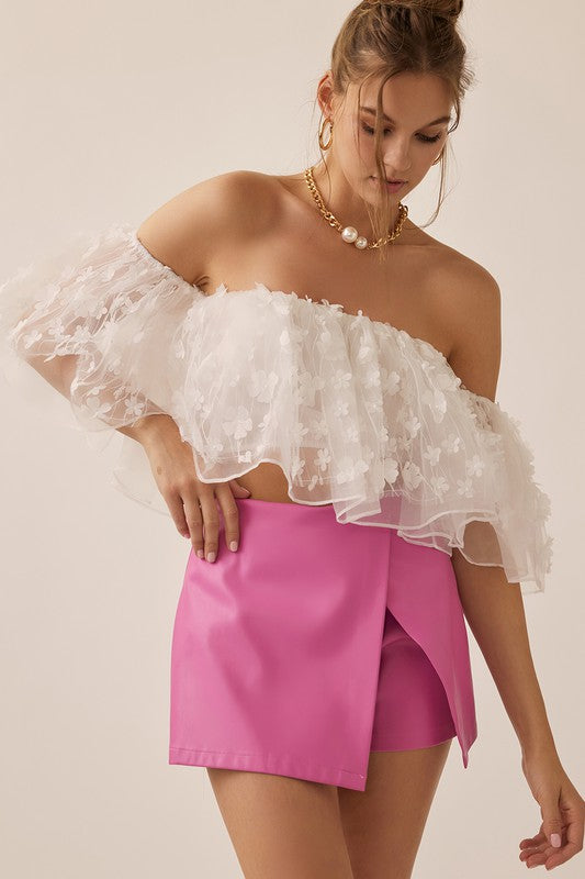Off Shoulder Crop Ruffled TopFabric:100% Polyester