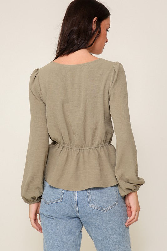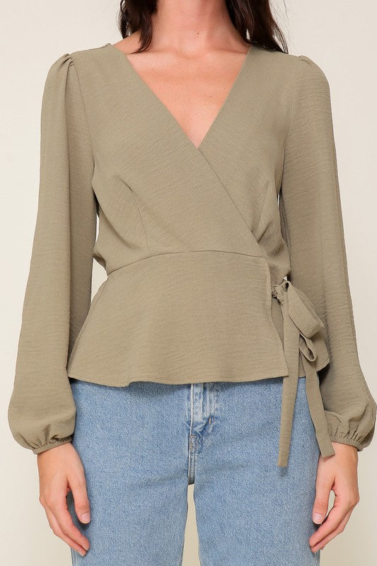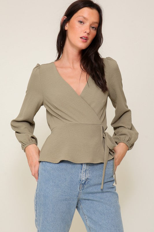 Revamp Your Wardrobe With The Exquisite Allure Of The Long Sleeve Surplice Brooklyn Airflow Top. Its Side Self Tie And Back Elastic Waist Detail Add A Touch Of Elegance And Fashion-Forwardness. Let This Exquisite Piece Become A Staple In Your Collection.