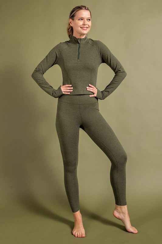 Olive Rib Brushed Mock Neckline Long Sleeves Top