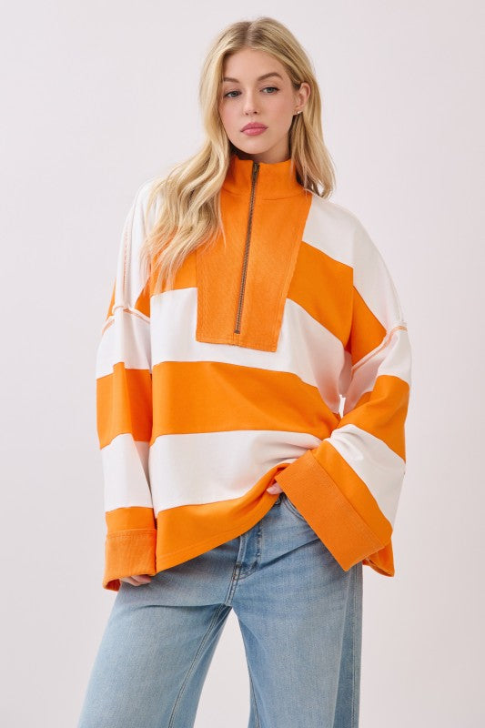 Orange/White Game Day Varsity Stripe Zip Pullover