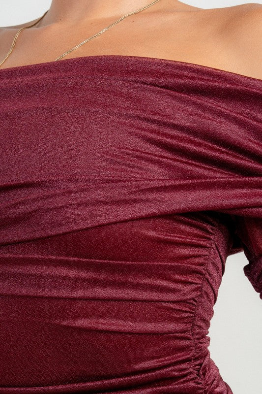 Long Sleeve On The Shoulder Ruched Mesh Top