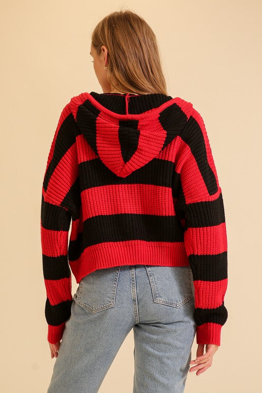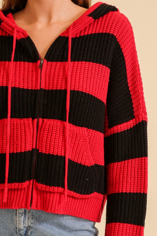 Red/Black Zip Up Cable Knit Hoodie
