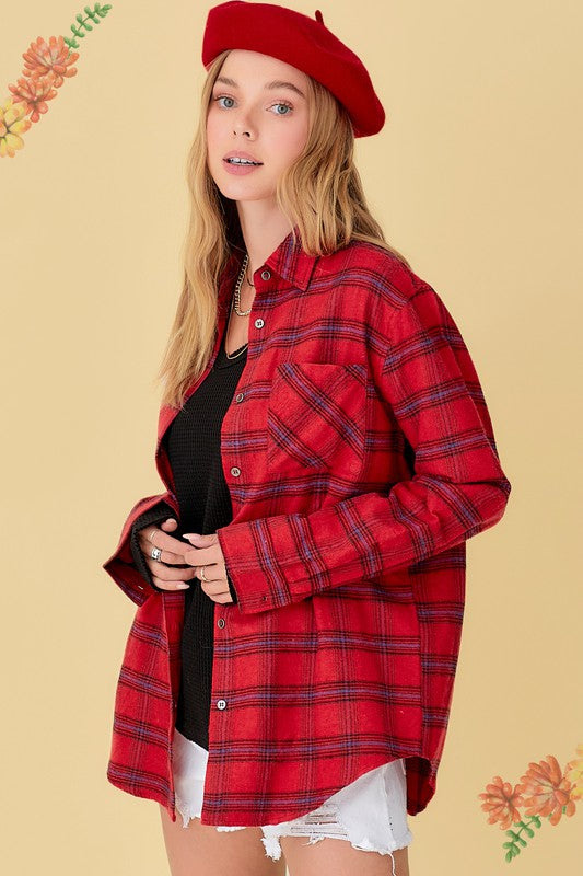 Our Classic V-Neck Long Sleeved Plaid Shirt Featured In The Perfect Plaid Fabrication Cut For A Oversized Fit, Chest Pocket Detail With A Front Button Closure.