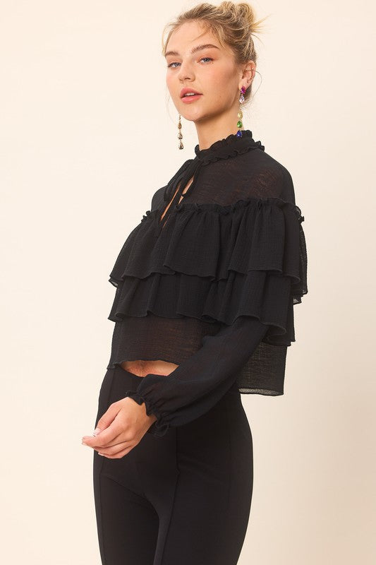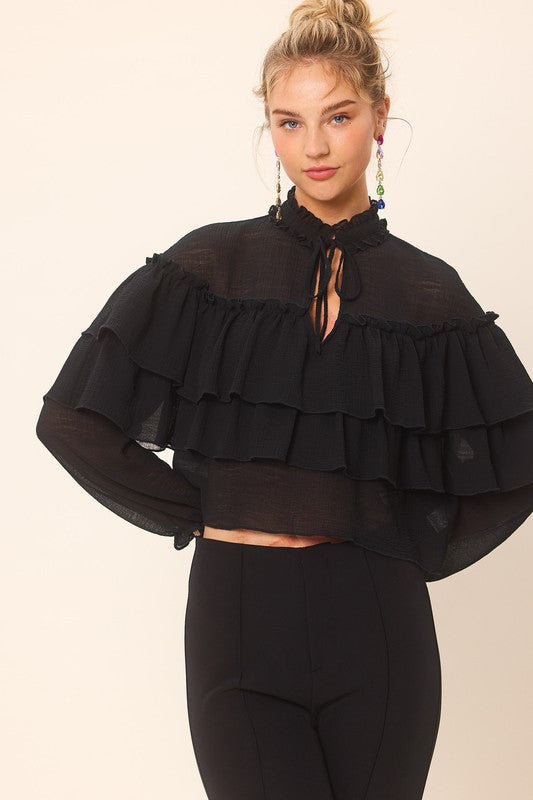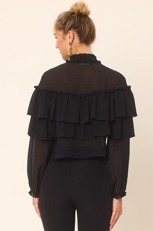 Black Ruffle Detailed Blouse Top
