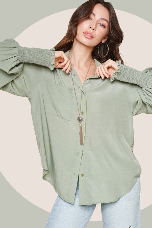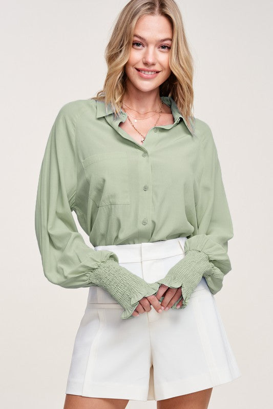 Button-Down Shirts With Smoking Detail Hem For Balloon Sleeves.