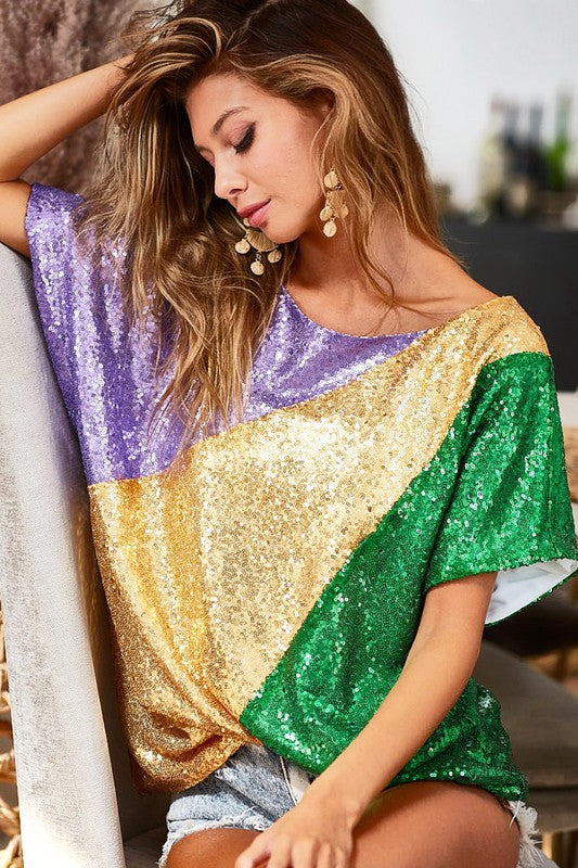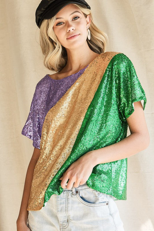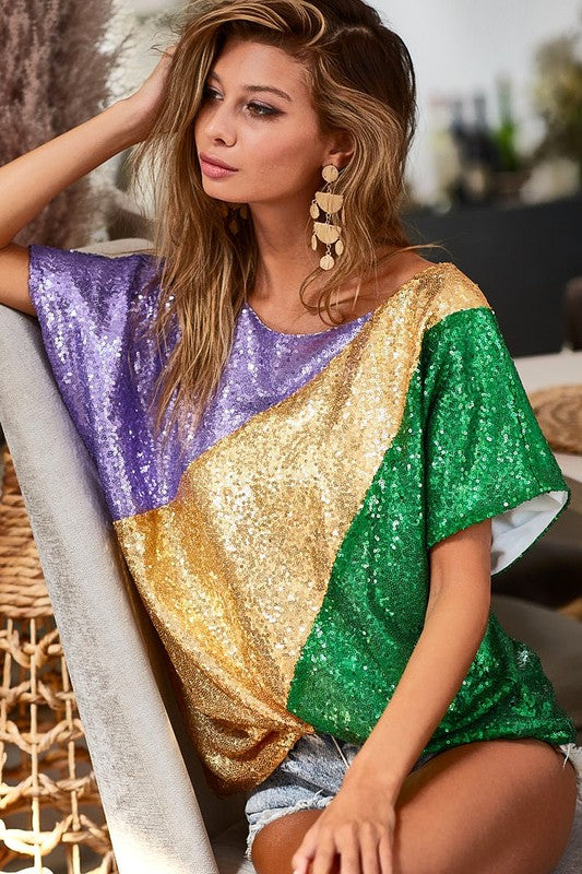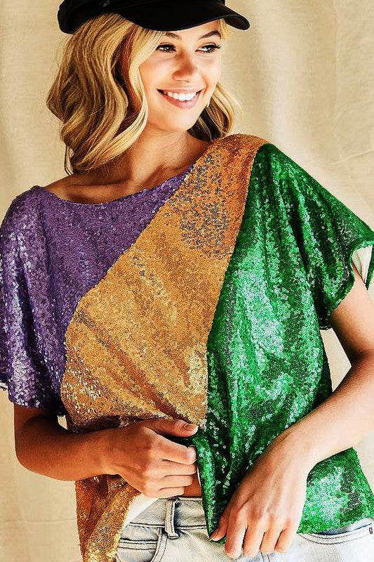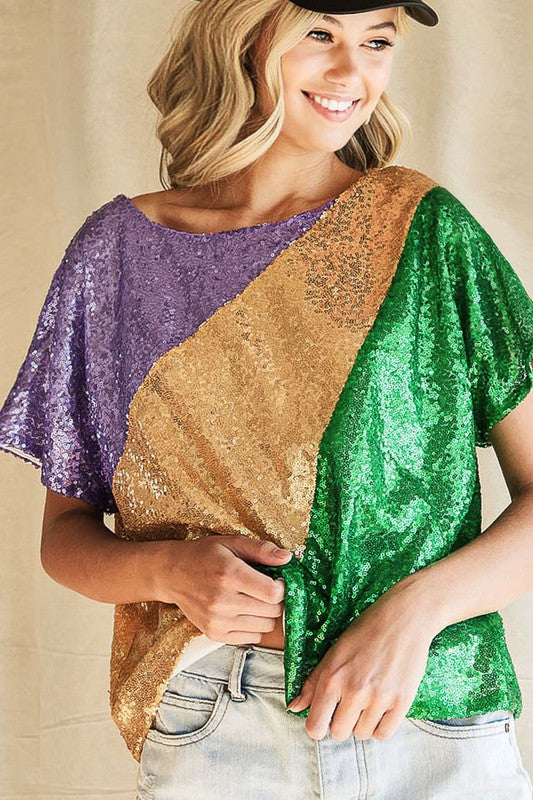 Sequins Color Blocking With Inside Lining