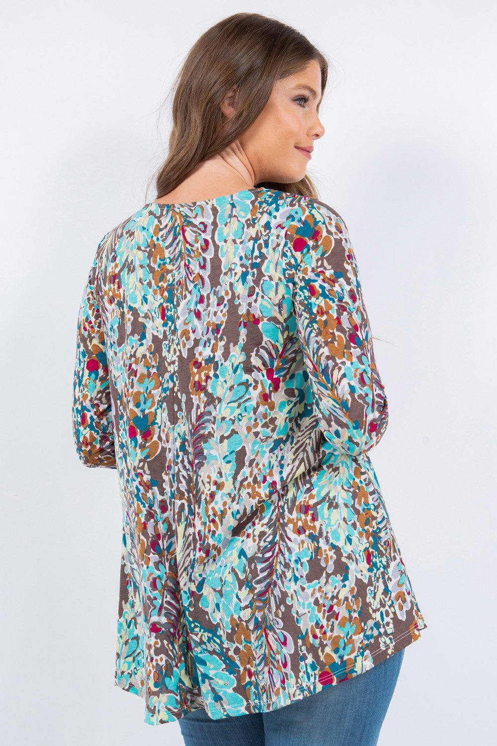 Mint-Brown Tropical Print 3/4 Tunic Top