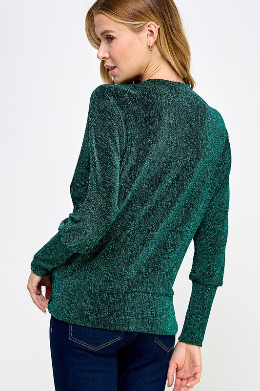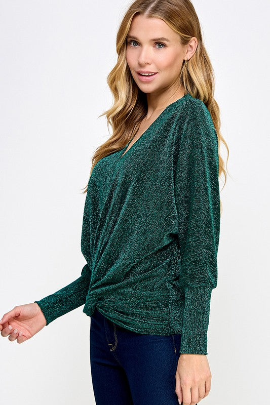 Emerald V Neck Lurex Twist Top