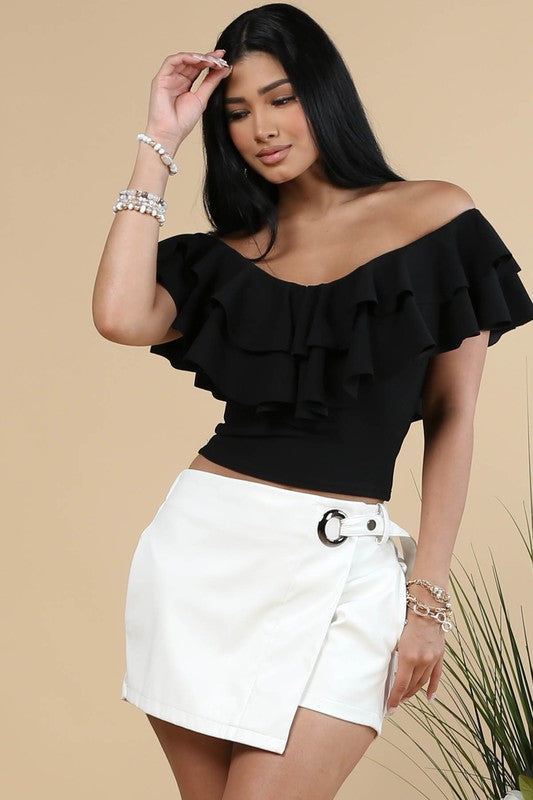 Black V Neck Ruffled Top