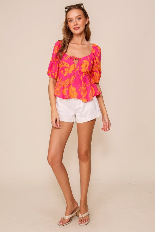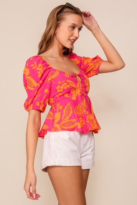 A Charming Blouse With Billowy Sleeves, Adorned In A Delightful Floral Print. It Features A Dainty Tie At The Front And A Beautifully Smocked Back For A Perfect Fit.Fabric Contents100% Polyester