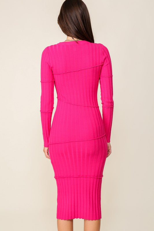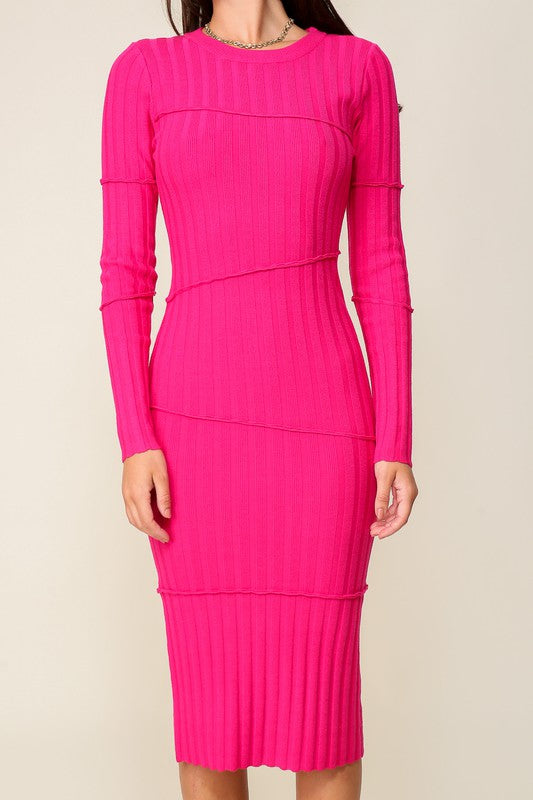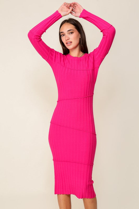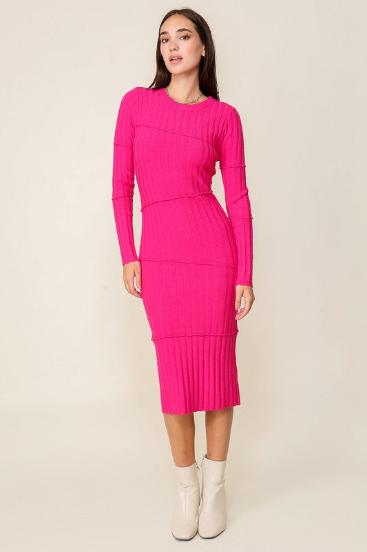 The Dress Features A Classic Scoop Neck Design That Accentuates Your Neckline While Maintaining A Modest And Sophisticated Look. The Long Sleeves Provide Warmth During Colder Seasons, Making It Ideal For Transitional Weather Or Chillier Days. Crafted From High-Quality, Soft Knit Fabric, This Sweater Dress Feels Luxuriously Gentle Against Your Skin, Ensuring A Comfortable Fit All Day Long. The Midi Length Adds A Touch Of Sophistication, Falling Gracefully Below The Knee To Showcase Your Legs While Still Offering Enough Coverage. What Truly Sets This Sweater Dress Apart Is The Exquisite Trim Detailing Throughout The Body And Sleeves.