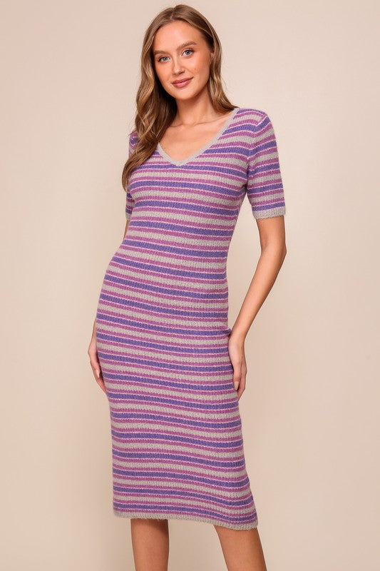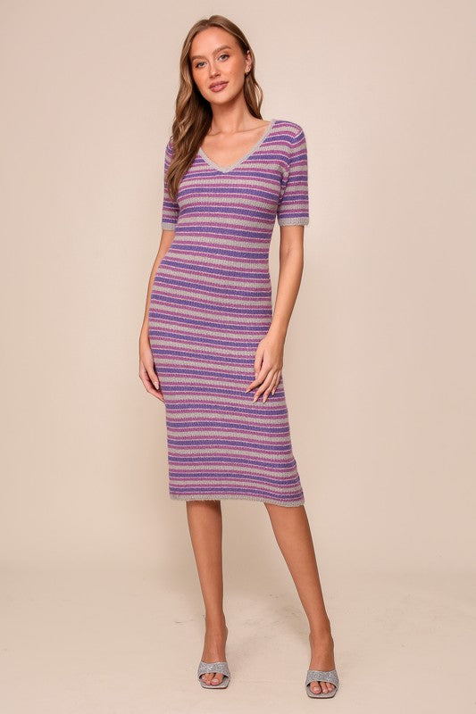 A Vibrant Tapestry Of Colors Adorns This Enchanting Dress, Adding A Playful Flair To Any Ensemble. Its Sleeves Sit Delicately At The Shoulders, Inviting The Warmth Of The Sun To Kiss Your Skin. The V-Neck Silhouette Exudes Elegance, Framing Your Collarbones With Grace. This Ravishing Midi-Length Garment Offers A Perfect Balance Of Sophistication And Comfort, Ensuring You'll Make A Statement Wherever You Go.