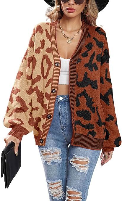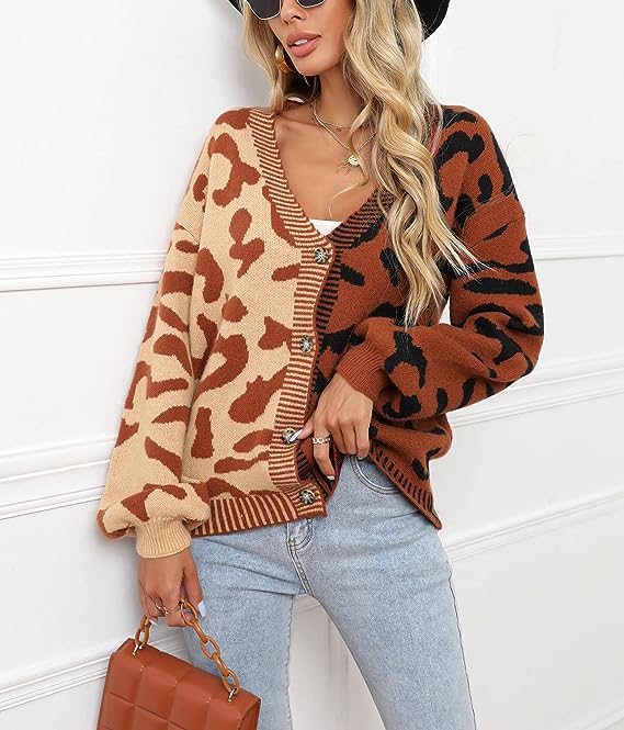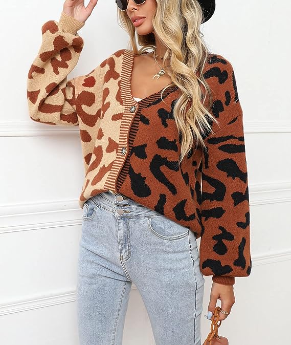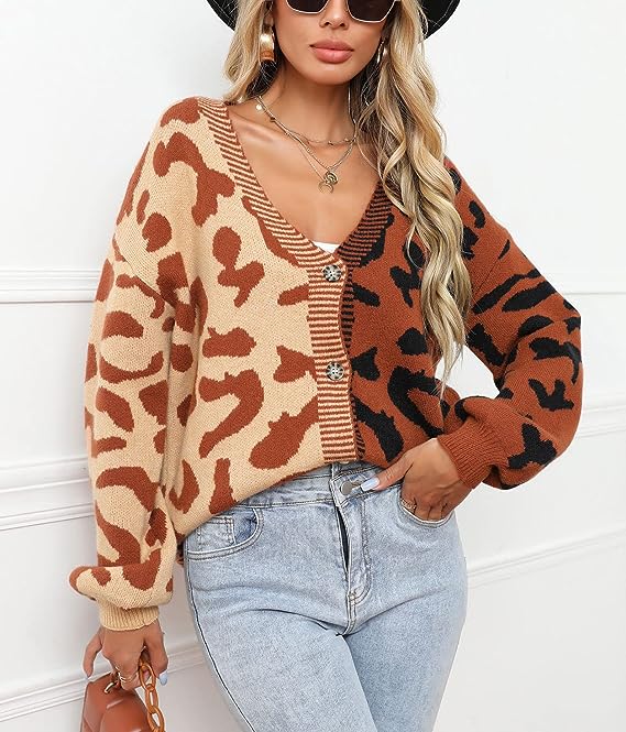 Fashion Knitted Cardigan Sweaters For Women Featuring Western Leopard Printed Pattern, Cool Contrast Color Style, Comfy And Lightweight To Wear.