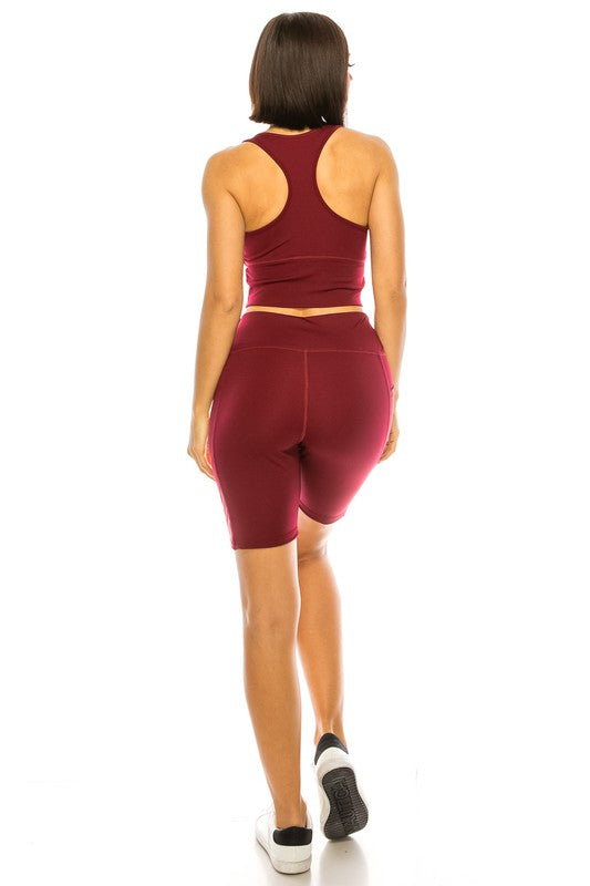 Women's Fashion Two Piece Set With Crop Tank Top And Matching Spandex Shorts. Perfect For Working Out, Athleisure, Or Street Wear Style. Side Pockets On Shorts Fits Phone And More! High Waist With Thick Elastic Band And Spandex Fabric For Ultimate Comfortable Stretch. No Sheer Fabric Or See Through. High Quality Poly/spandex Blend.