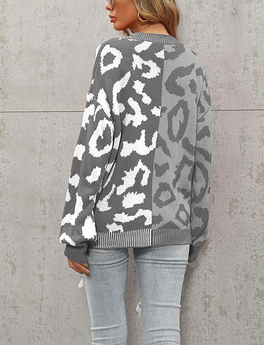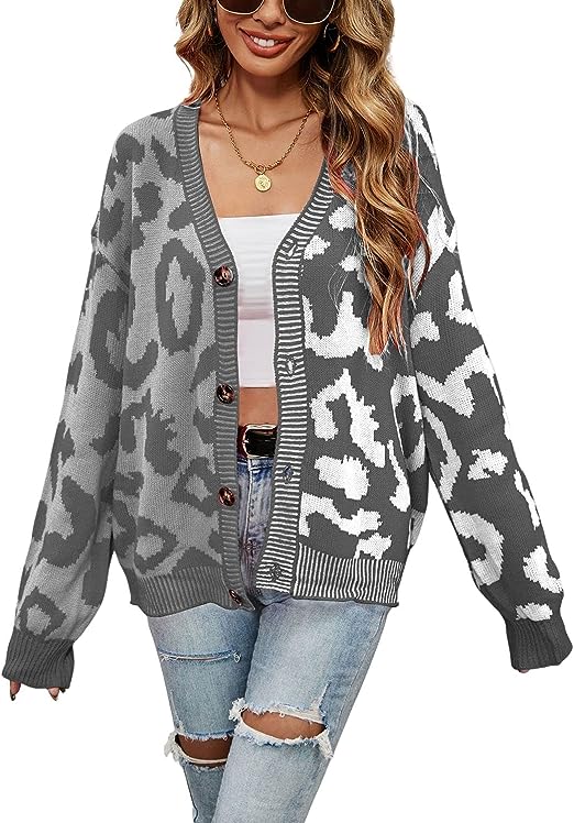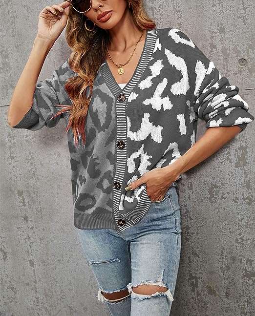 Fashion Knitted Cardigan Sweaters For Women Featuring Western Leopard Printed Pattern, Cool Contrast Color Style, Comfy And Lightweight To Wear.