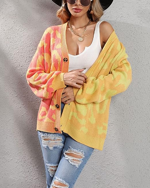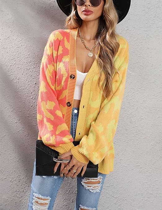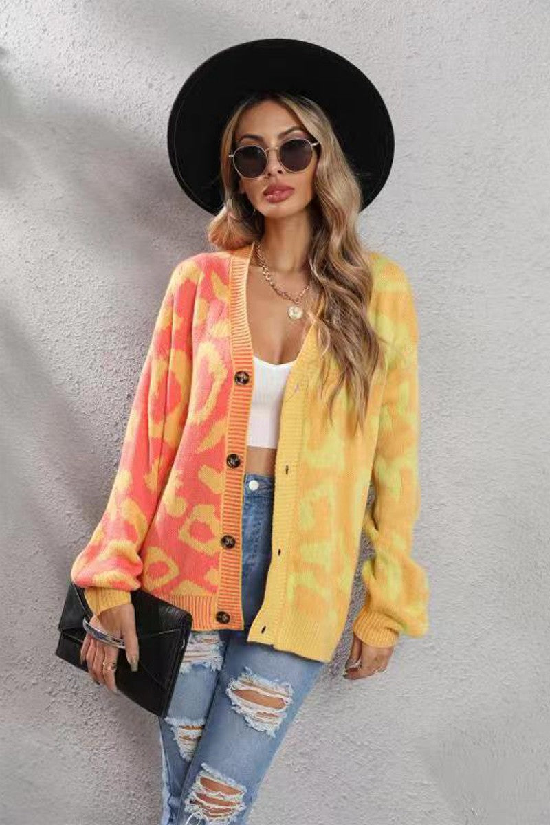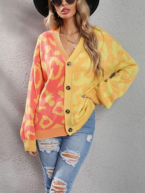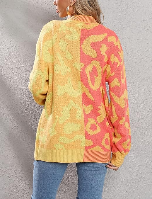 Fashion Knitted Cardigan Sweaters For Women Featuring Western Leopard Printed Pattern, Cool Contrast Color Style, Comfy And Lightweight To Wear.